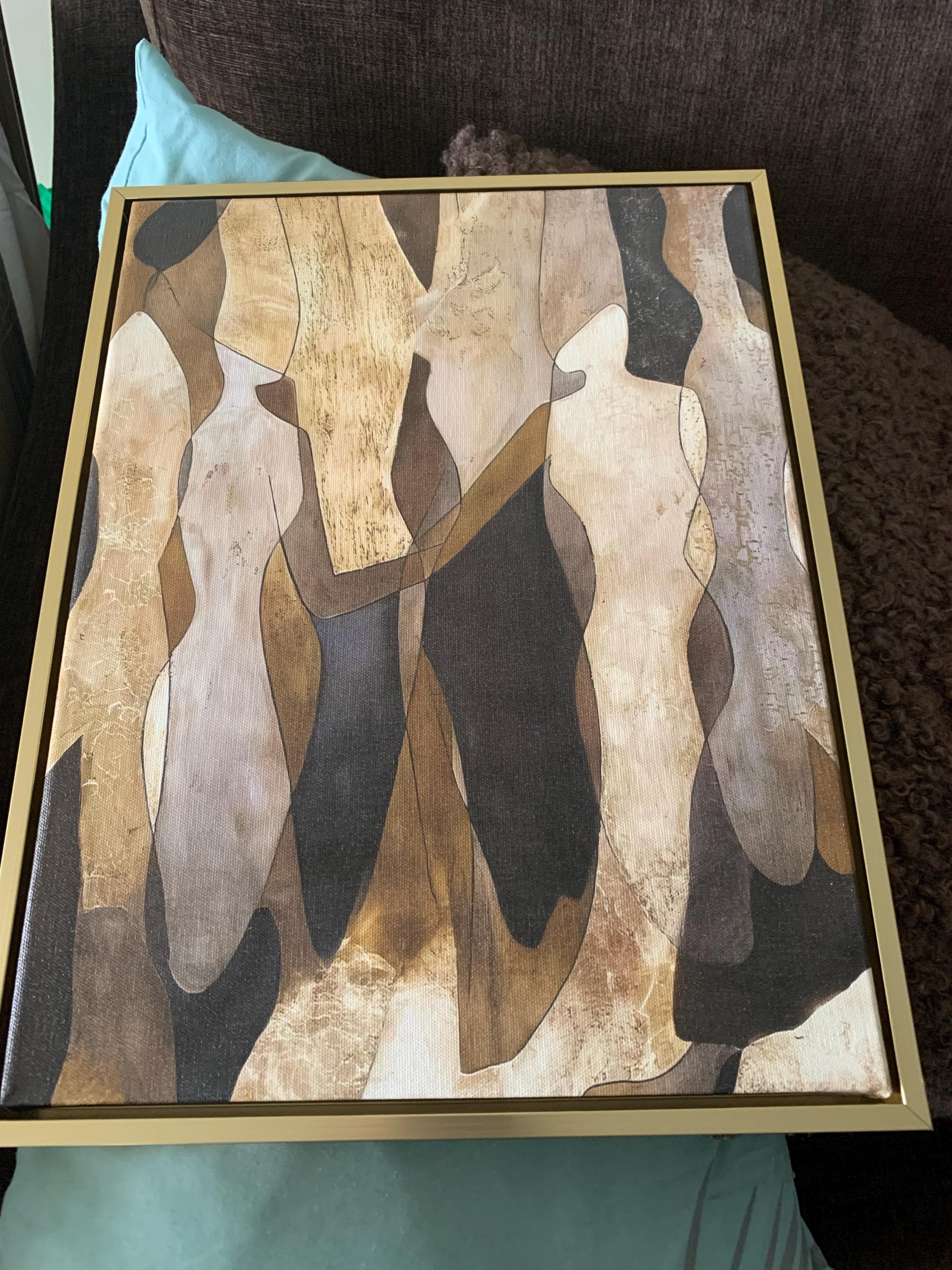 Earth Tones Abstract Shape Framed Canvas Painting - Brown and Gold Artwork, Nordic Scandinavian Ready To Hang