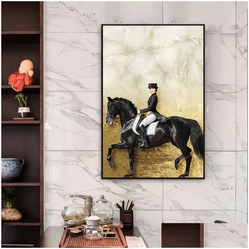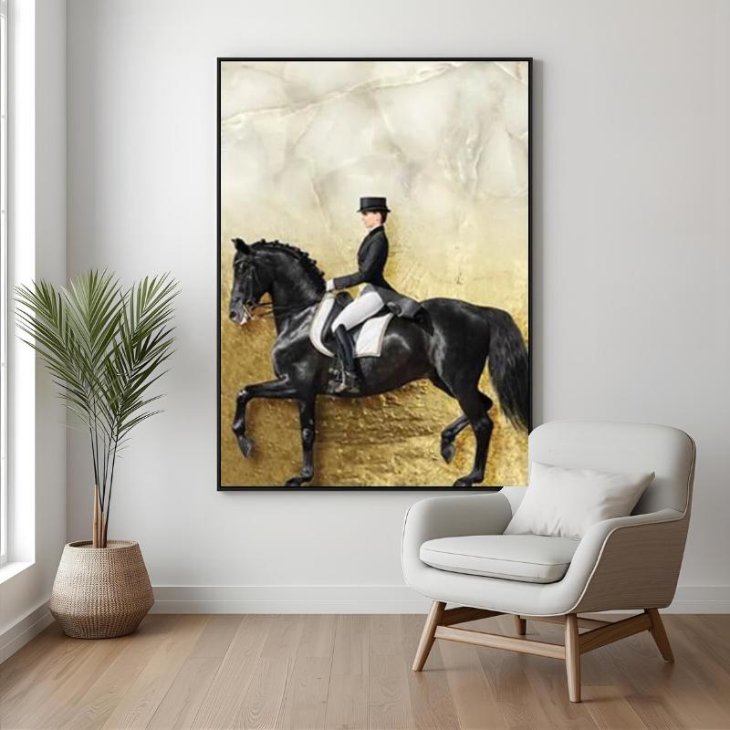 Black Horse Canvas Wall Art, Gold Detail Animal Wall Art, Black and White Decor, canvas print ready to hang