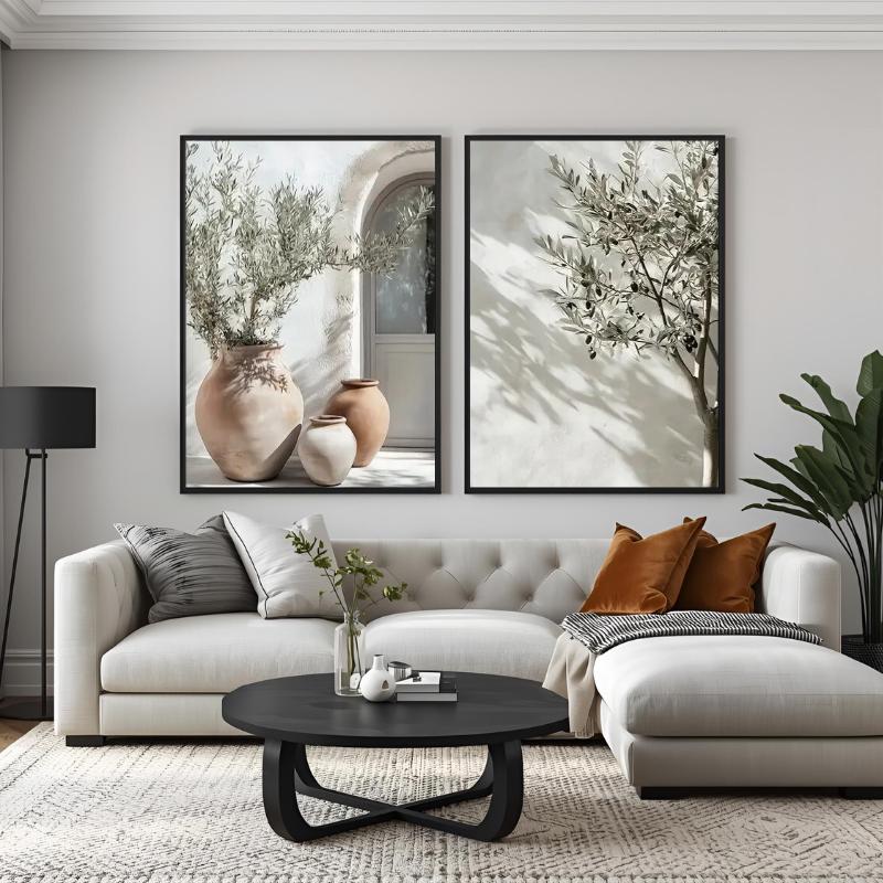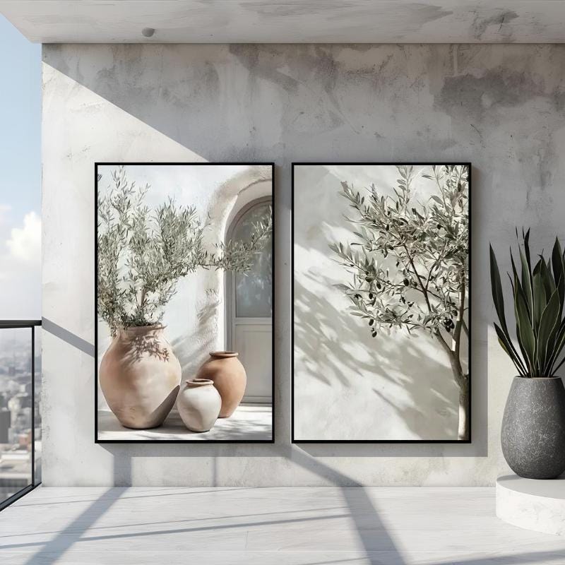 Set of 2 Canvas, Boho Olive Tree Green and Beige Modern Canvas Wall Art Poster Print,Nordic Scandinavian Ready To Hang