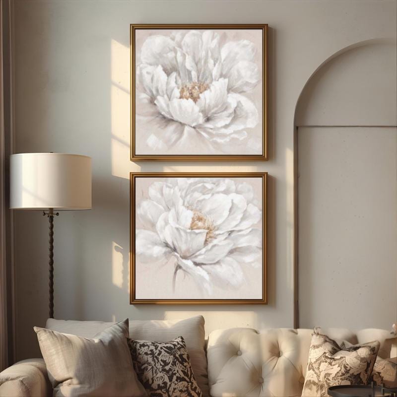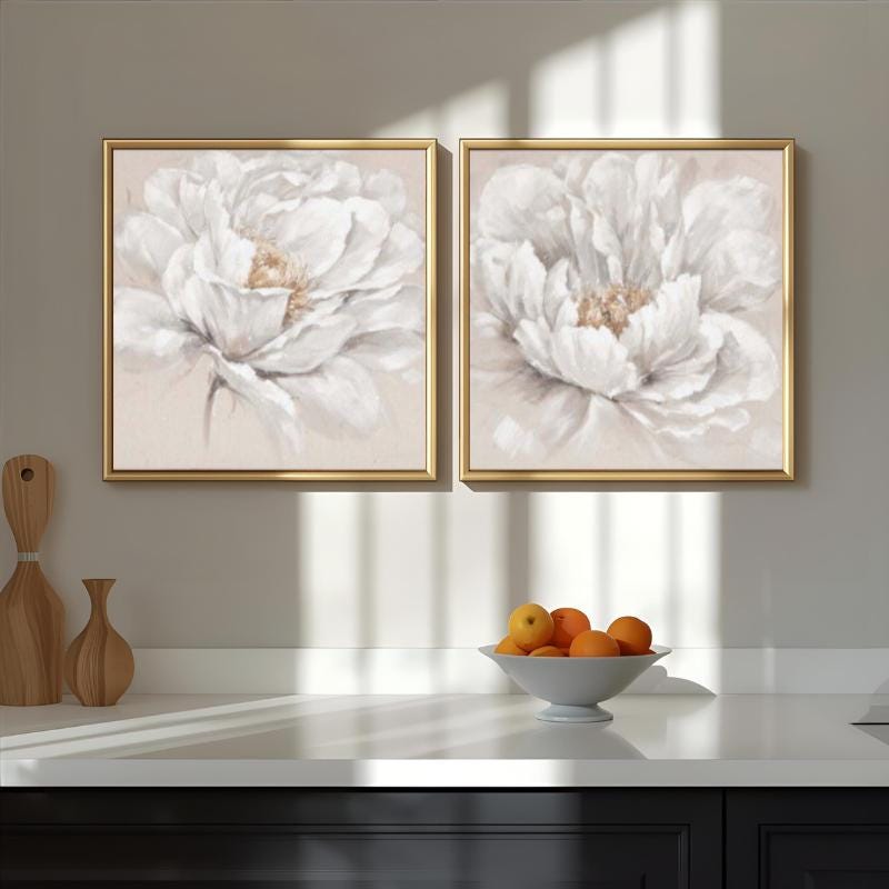 Set of 2 Canvas, Modern Beige & Cream Flowers, White Floral Canvas Wall Art Poster Print,Nordic Scandinavian Ready To Hang