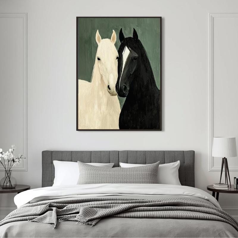 Modern Abstract Horses Canvas Wall Art, Animal Wall Art, Gift Black and Cream Horses decor, canvas Print Ready to Hang